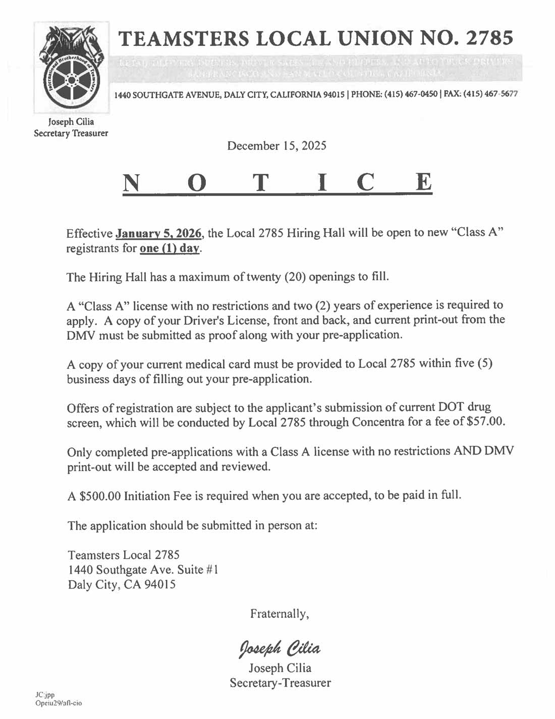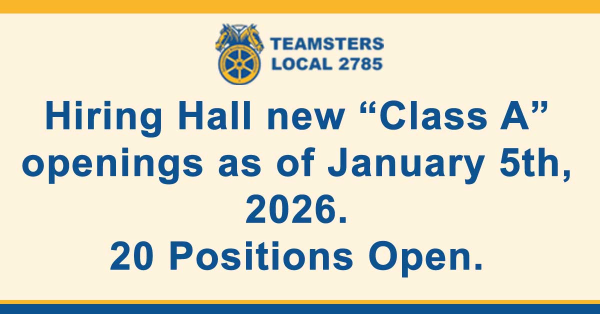 Hiring Hall new Class A positions open View Larger Image admin27852025-12-30T17:38:01+00:00December 30th, 2025|Categories: Event, News, Top Blog| Share This Event! FacebookTwitterLinkedInPinterestEmail